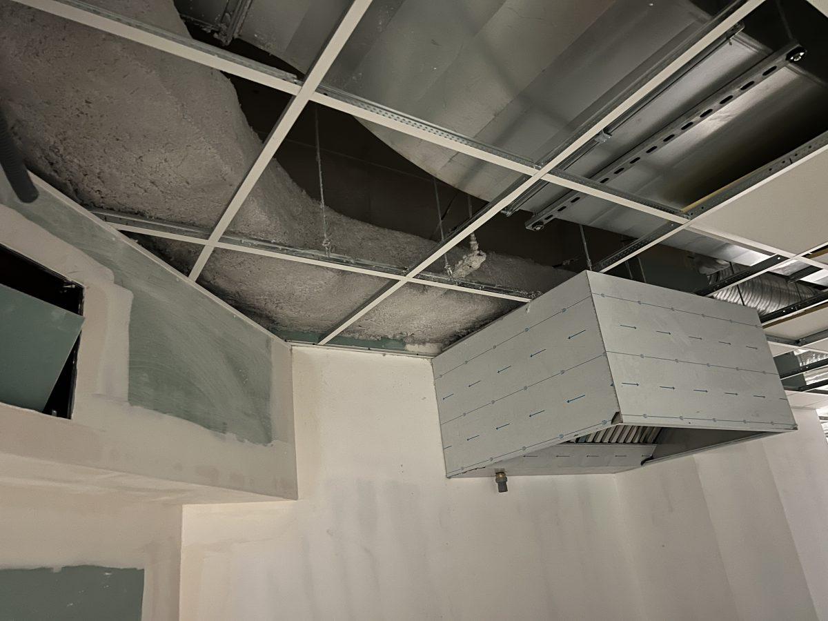 Flocage de gaine en soufflage et d’une gaine de hotte de cuisine industrielle
