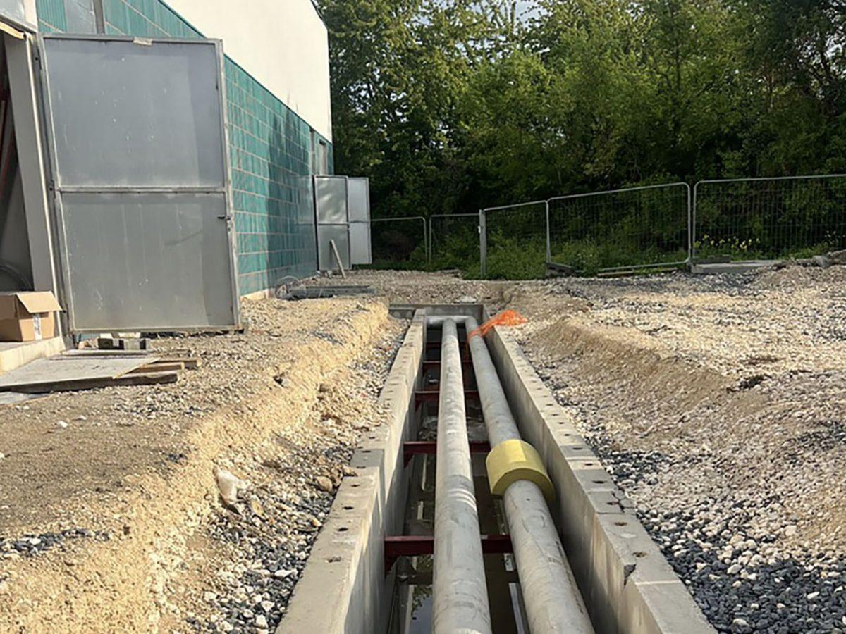 Dans cette opération de géothermie profonde à Villetaneuse, ERCE intervient en tant que sous-traitant de SADC pour la réalisation des ouvrages techniques autour de la chaufferie. Actuellement, nos équipes travaillent sur le caniveau technique attenant à la chaufferie, destiné à accueillir les réseaux enterrés (eau chaude, alimentation, maintenance, etc.). Ce type d’ouvrage, souvent invisible une fois le chantier terminé, est pourtant essentiel à la performance et à la durabilité du système installé.