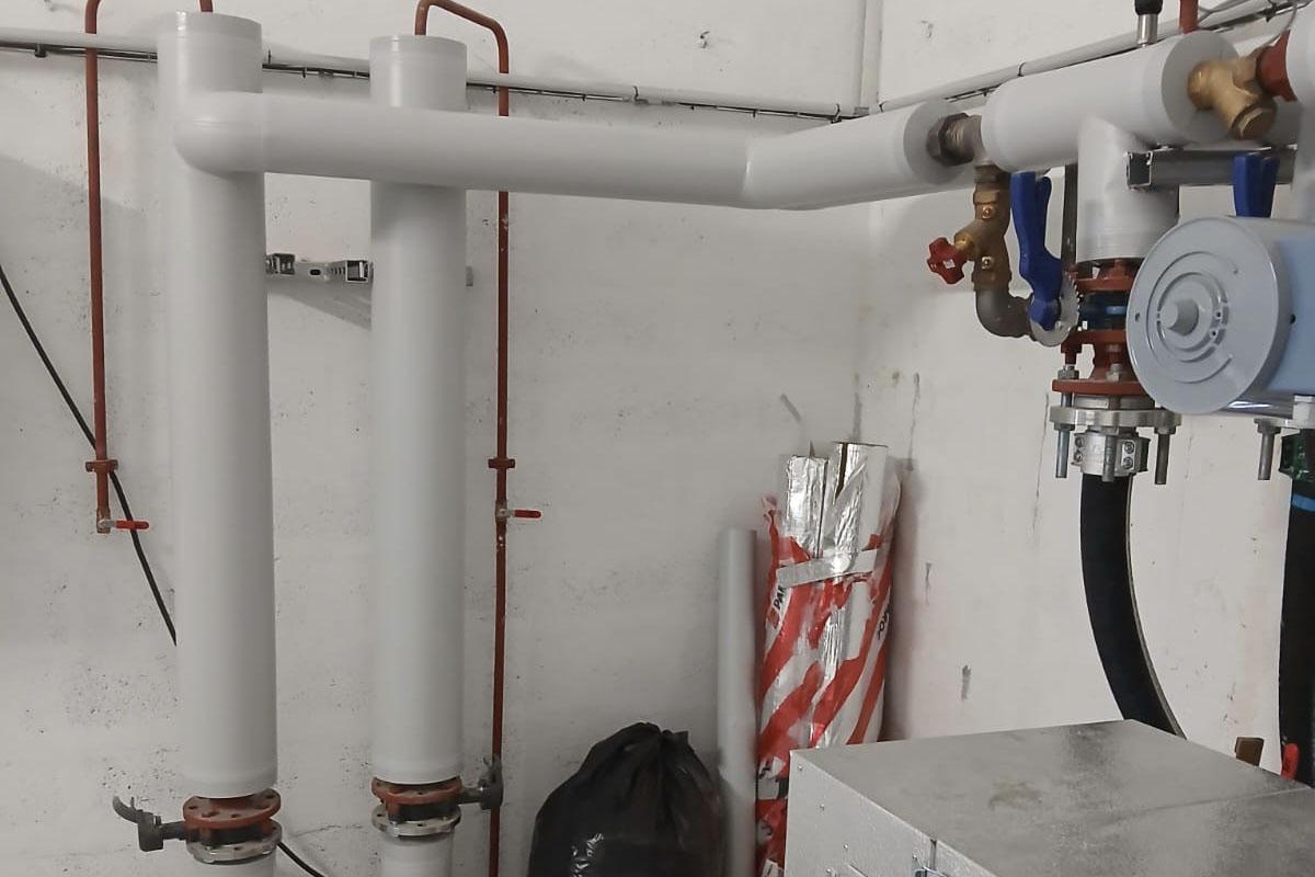 Pour parfaire cette installation, une finition en PVC a été choisie. Le PVC permet de protéger la laine de roche et assure une durabilité dans un environnement exposé à l’humidité et à de possibles variations de température. De plus, ce choix de finition améliore l’esthétique de cette chaufferie de centre scolaire, tout en restant très fonctionnel.